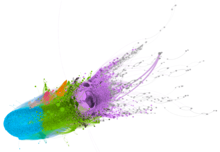 ← → Protein–protein interaction network with community detection. Credit: ExaGraph co-design center, Exascale Computing Project