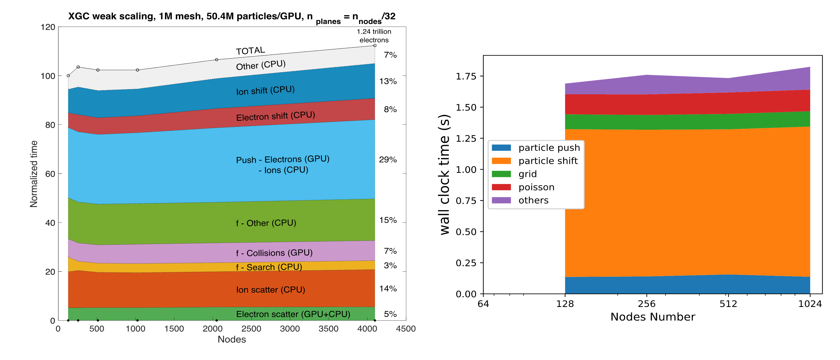 Figure 7. Near-perfect XGC scaling on the pre-exascale Summit supercomputer. Source: https://nucleus.iaea.org/sites/fusionportal/Shared%20Documents/FEC%202020/fec2020-material/slides1357.pdf