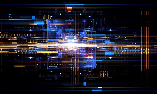 Led Light. Abstract effect. Future tech. Glare cubes. Digital cpu signal.